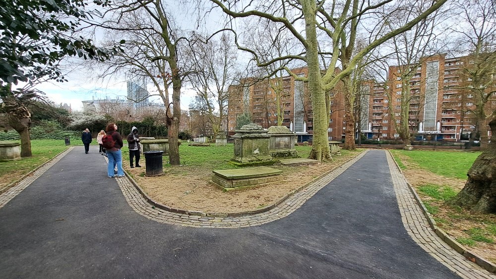 Также на этом кладбище была похоронена Мэри Уоллестонкрафт (Mary Wollestonecraft 1759-1797) известная как автор публикации о правах женщин ‘A Vindication of the Rights of Woman’ (1792). Она умерла через 10 дней после того, как родила дочь, которую мы знаем как Мери Шелли (1797-1851) — автора «Франкенштейна». Останки Мэри Воллестонкрафт были впоследствии перенесены в Bournemouth, однако небольшой памятник стоит и тут.