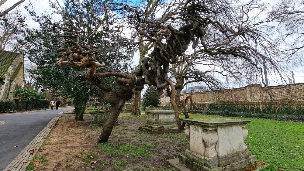 Странное место с удивительными взаимоотношениями с творческими людьми. И даже с современными музыкантами. «Битлз» делали тут фотографии для «Белого альбома». Здесь выступали такие артисты, как Шинейд О’Коннор, Лора Марлинг, Брайан Ино, Рон Секссмит, Джейсон Мраз, Дэмиен Хурадо, Ньютон Фолкнер, Симона Феличе, Том Оделл, Итан Джонс, Люси Роуз, Сэм Смит, Агнес Обель и Слип Токен. Душа Баха, если он каким то образом тут — наверное порадовалась или нет. Кто знает. Но это интересный феномен давать концерты авторской песни на территории древнего кладбища. Как его расценивать я не знаю. Но место однозначно впечатляющее. Искривленные деревья добавляют этому пространству готичной атмосферы. А искажения на фотографиях позволяют предположить… мои предположения я оставлю при себе…