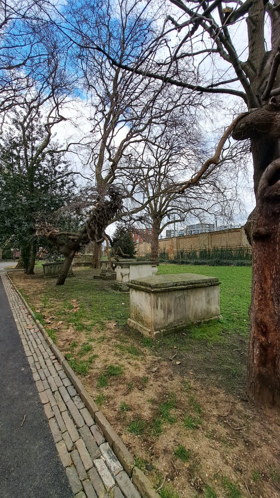 Но, до христианских богослужений на холме, где теперь стоит церковь, вероятно было сельское святилище. А на спуске к Kings Cross и Euston располагался римский лагерь. И в средневековой стене здесь можно найти вторично использованную римску кладку. Но официальной версии от археоологов на эту тему пока нет. Однако высокий холм на берегу реки — отличное место для поклонения богам в древнее время. Поэтому версия для меня звучит реалистично. Кому могли тут молиться язычники? Сейчас это уже не установить ибо количество погребенных тут христиан, могло стереть и заслонить собой всю первичную энергетическую историю.