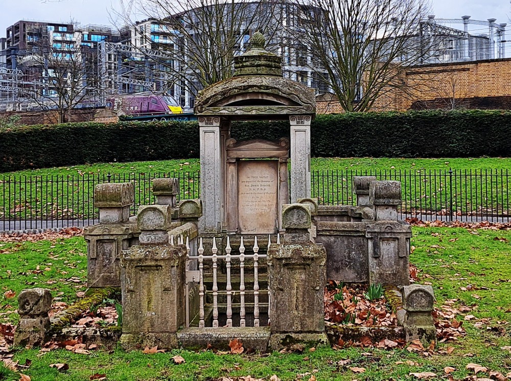 Сэр Джон Соан (Sir John Soane 1753-1837). Масон UGLE и один из величайших английских архитекторов, одной из известнейших работ которого был Английский Банк. Коллекционер с собственным музеем, что по некоторым категориям может поспорить с Британским музеем. Дизайн его гробницы оказал непосредственное влияние на дизайн знаменитой красной телефонной будки, созданный Джайлсом Гилбертом Скоттом.
