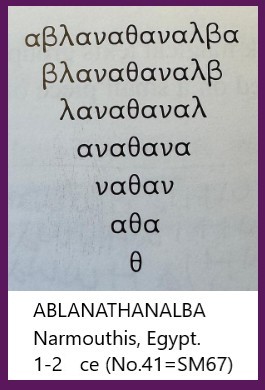 Не исключено, что изначально магическое слово имело несколько вариантов написания и звучания. Так мы можем найти гностическое магическое слово, аналогичное по зеркальности насписания, среди магических греко-египетских папирусов 1-2 века. И выглядит оно следующим образом ABLANATHANALBA. По версии К.У. Кинга слово означало «ты отче наш».