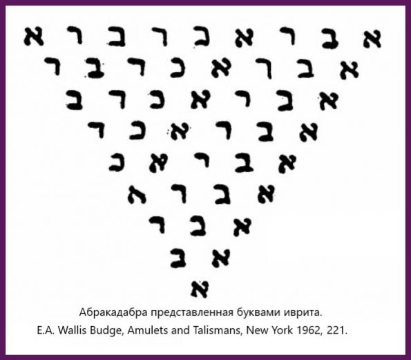 Г. Гумельберг (G Humelberg), редактор Liber Medicineis (Zurigo 1540), отмечал об абракадабре ее евритское или арабское происхождение: