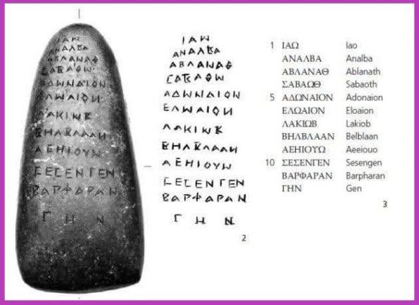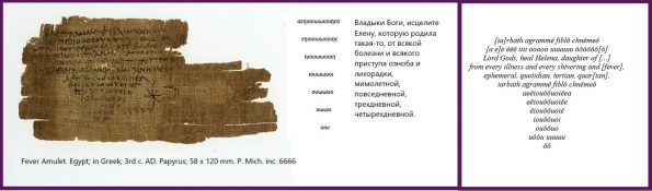 Коптский кодекс 6 века использует аналогичный «Абракадабре» метод, но с другими магическими словами.