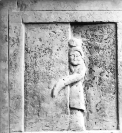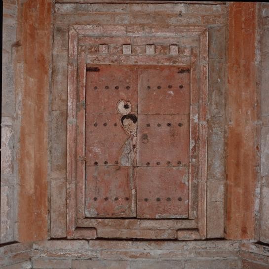 “Жінка, що наполовину прикрита двірями є найбільш привабливою рисою всієї гробниці. … Цей тип різьблення спочатку використовувався перед труною. Коли ж він став прикрасою в гробниці та був розміщений у задній ніші? Мабудь, це пройшло через низку процесів.”