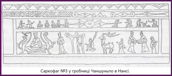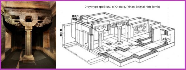 Якщо подивитись на балки в деяких гробницях, то вони дуже подібни до тих, що зображени на кам’яной труні з Сінцзіе. Чи є тут якась логіка — невідомо.