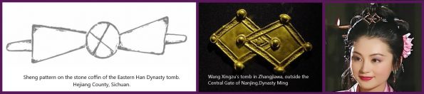 Зверху ми можемо побачити трохи викривлений символ 方胜纹 (Fāng shèng wén) Фан Шен Вень. Прикрасу для волосся у формі Шен яку, згідно легенд, носила матінка королева Заходу Сіванму.
