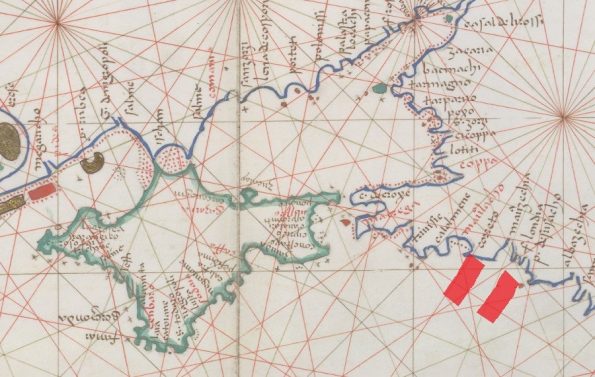 Итальянский портолан 1553 года, где все еще есть Susaco, Londina и Vagropolis