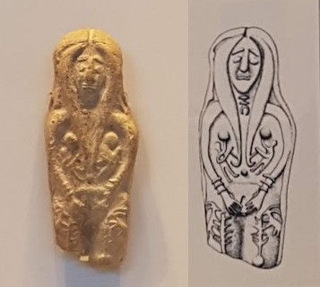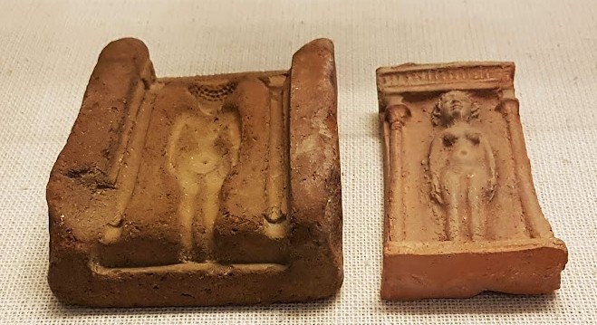 О том, что богиню могли изображать и в виде треугольника, который могли носить как нагрудное украшение так и серьги на нам говорят археологические находки и вот этот пассаж: