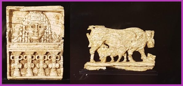 Богиня в окне и сцена коровы с теленком. Археологический музей Хайфы. 8 век до н.э. Финикийский стиль.