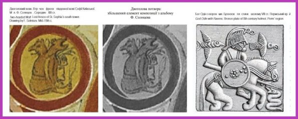 Можна навіть припустити, що в софійському міфологічному сюжеті з двома вовками, що уособлюють Одіна, не просто відобразилось напівварварське світовідчуття – тут закодовано ім’я Володимира як замовника розпису і військової магії.