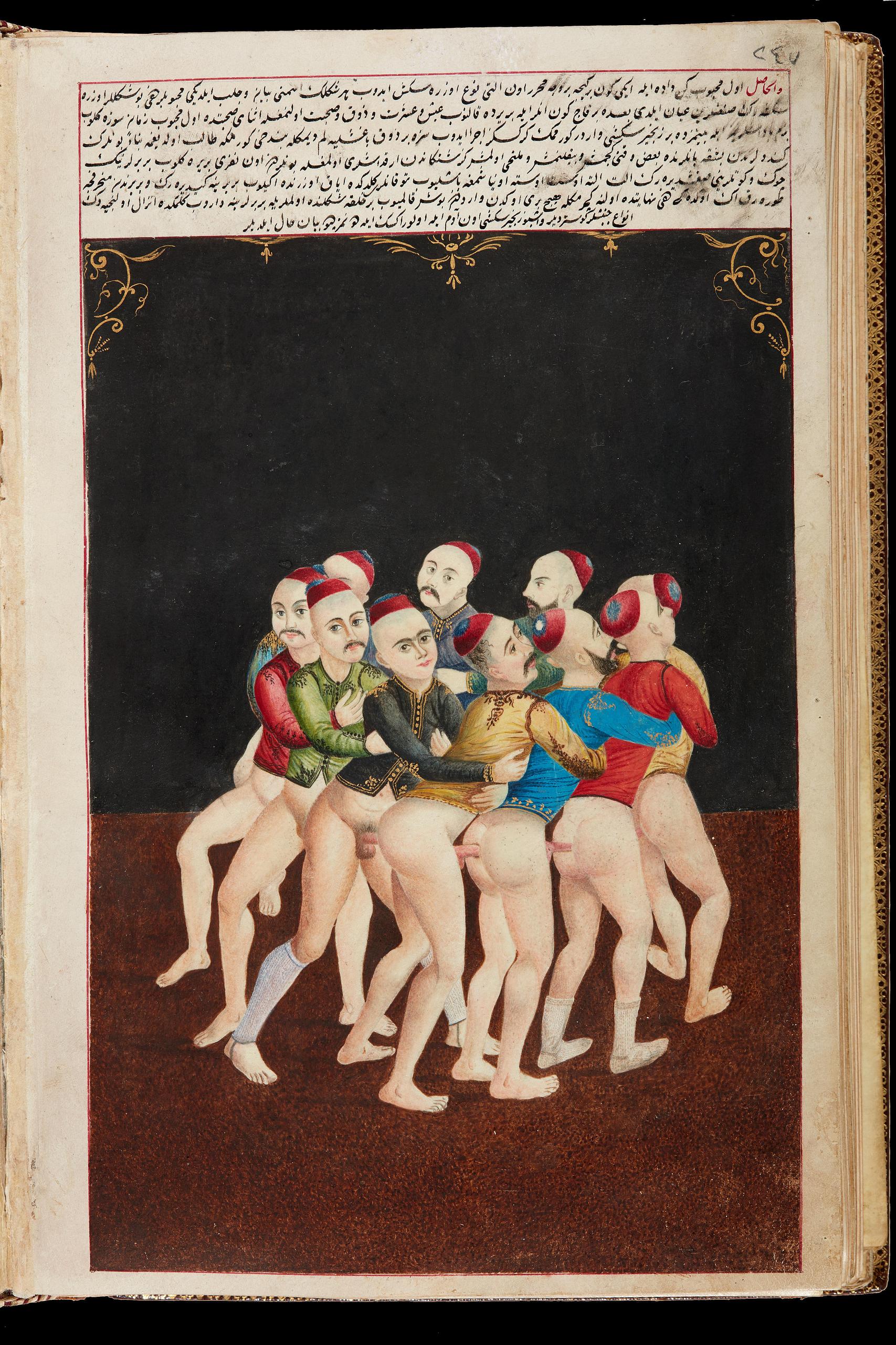 «…Отож, коли ці прекрасні юнаки (maḥbūblar) збираються разом, кожен з них стає джерелом нескінченної втіхи та насолоди (ḥezz ve sefā). Коли вони шикуються один за одним, немов ланки золотого ланцюга, їхні тіла переплітаються у спільній пристрасті.