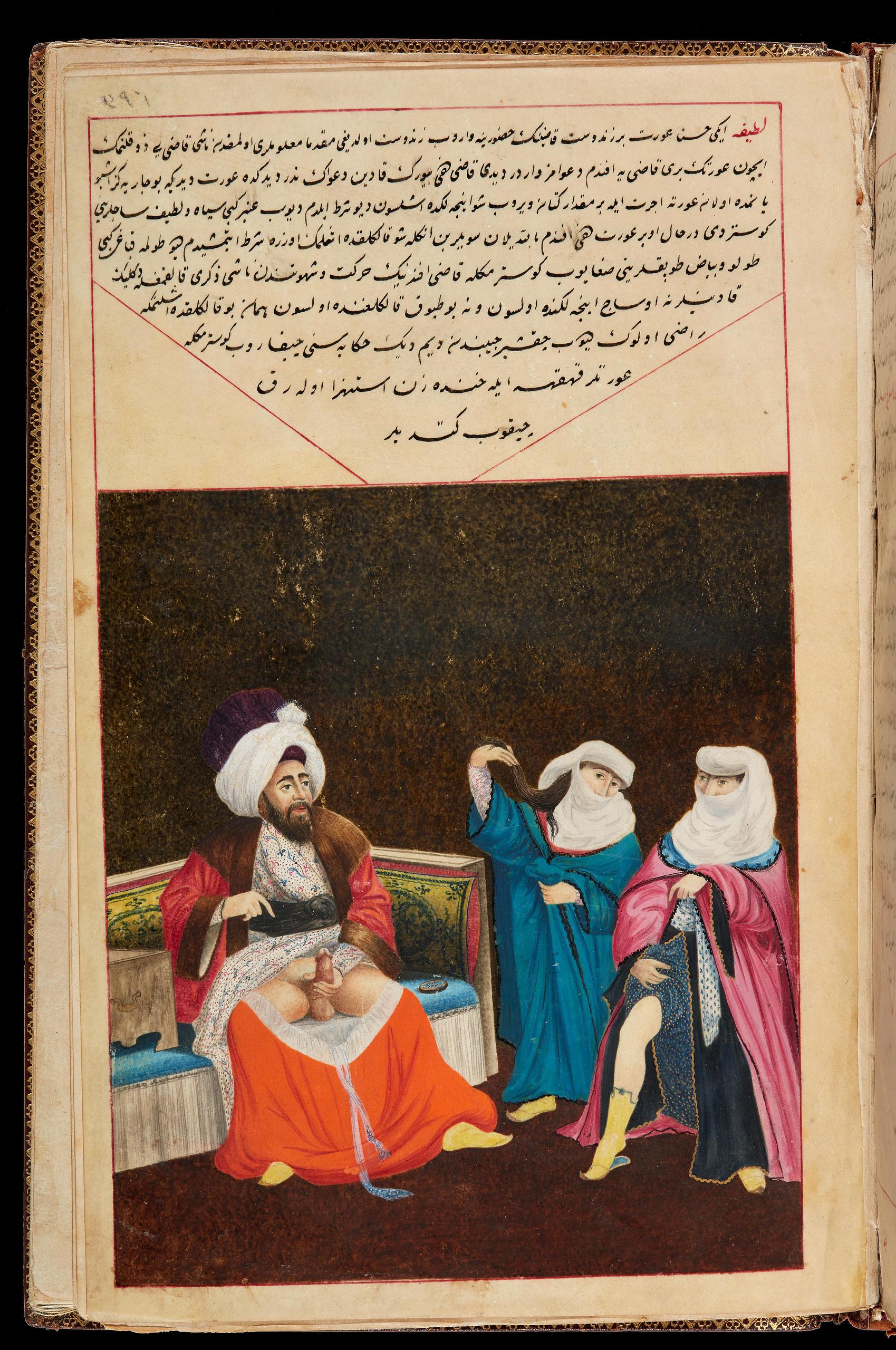 Виявляється, ця мініатюра походить із османського твору “Tuhfetü’l-Mülk» (Gift of the Kingdom — Дар Царства) згідно Mehmed b. Mustafa el-Mısrî. Й вона входить до блискуче ілюстрованого твору, що налічує щонайменше 85 мініатюр, багато з яких мають вкрай сексуальний характер.
