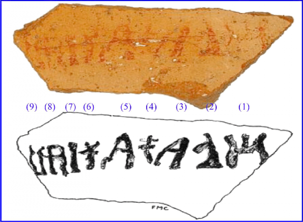 Это остракон RN 9794, на котором есть надпись, которая принадлежит филистимлянам. Выполнена она буквами кипро-минойского алфавит. Но!