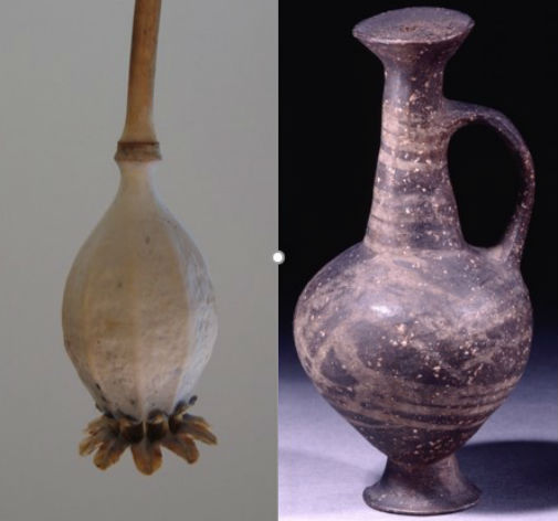 Вернемся же к загадочному снадобью египтеской царицы, которое добавляли в вино. Тем более, что изображения этого процесса есть на различной древней керамике где из маленького сосуда добавляется “нечто” в сосуд для пития. И оказалось, что есть кувшинчики “билбил”, которые уж больно напоминают маковые головки.